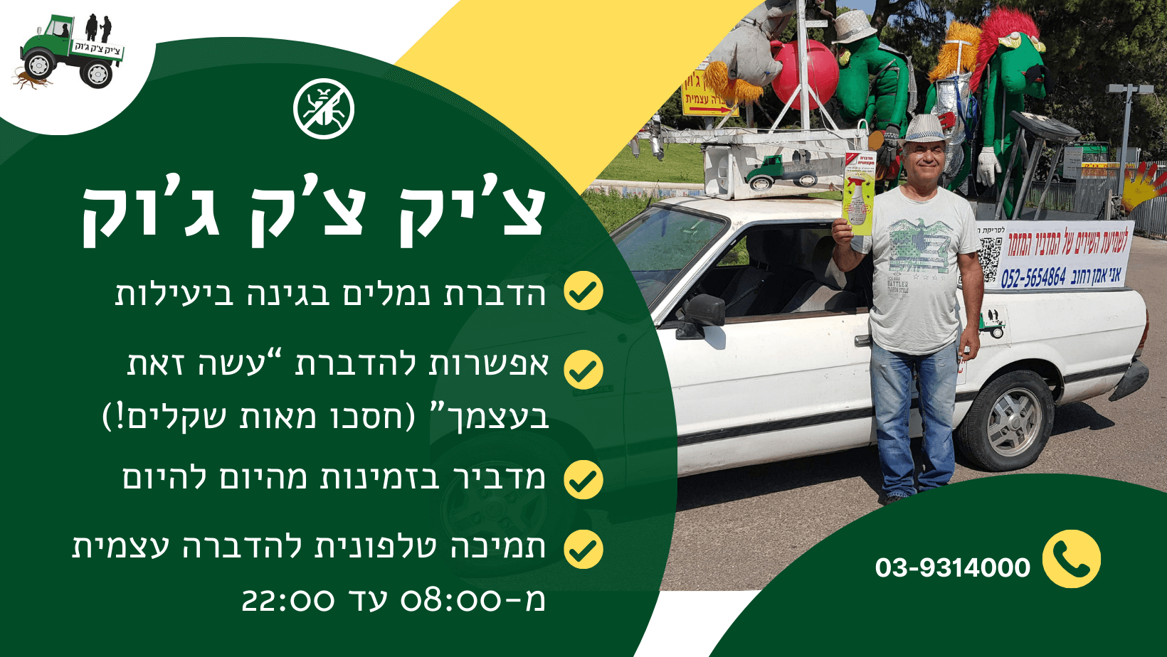 מעוניינים בשירותי הדברה אמינים ומקצועיים? נשמח לעזור לכם ביעילות ובמיומנות, עם מגוון שירותים ומוצרים איכותיים. צרו קשר בהקדם, או השאירו פרטים>>>